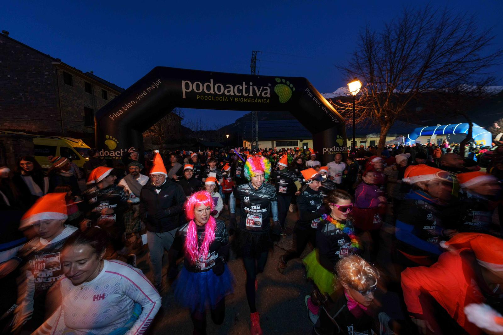El 31 de diciembre, desde hace ya casi un cuarto de siglo, la tradición en el Pirineo aragonés indica que la mejor manera de finalizar el año es corriendo en la San Silvestre de Villanúa. Más de 1.400 corredores han cumplido con esa tradición y se han inscrito para participar en una prueba en la que algunos compiten, pero la mayoría solo quieren pasarlo bien y formar parte de una costumbre que con el paso de los años ha arraigado de una manera extraordinaria.