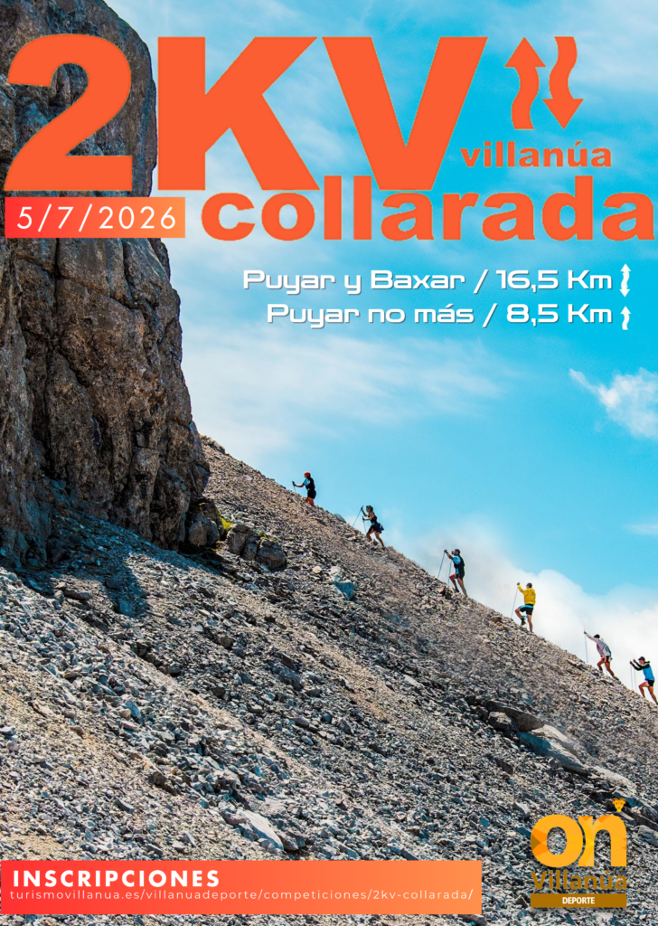 1. Villanúa Deporte, en colaboración con el Ayuntamiento de Villanúa y el Club de Montaña 2KV, organiza la carrera de montaña 2KV Collarada, que este año solo será Kilómetro Vertical debido a la acumulación de nieve en la cima de Collarada. Se celebrará el 15 de junio.